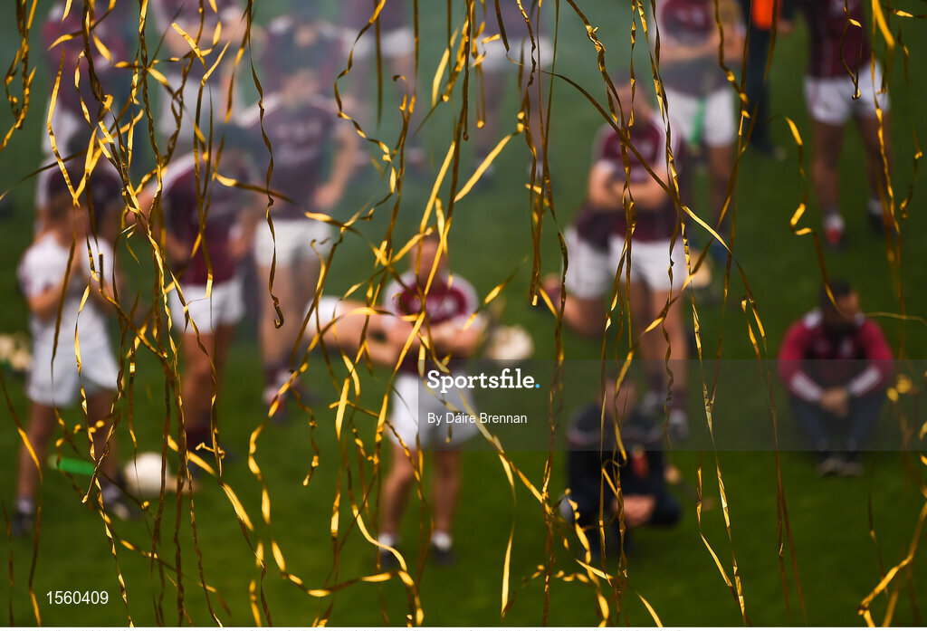 19 August 2018; Dejected Galway players watch the presentation from the field after the GAA Hurling All-Ireland Senior Championship Final match between Galway and Limerick at Croke Park in Dublin. Photo by Daire Brennan/Sportsfile
