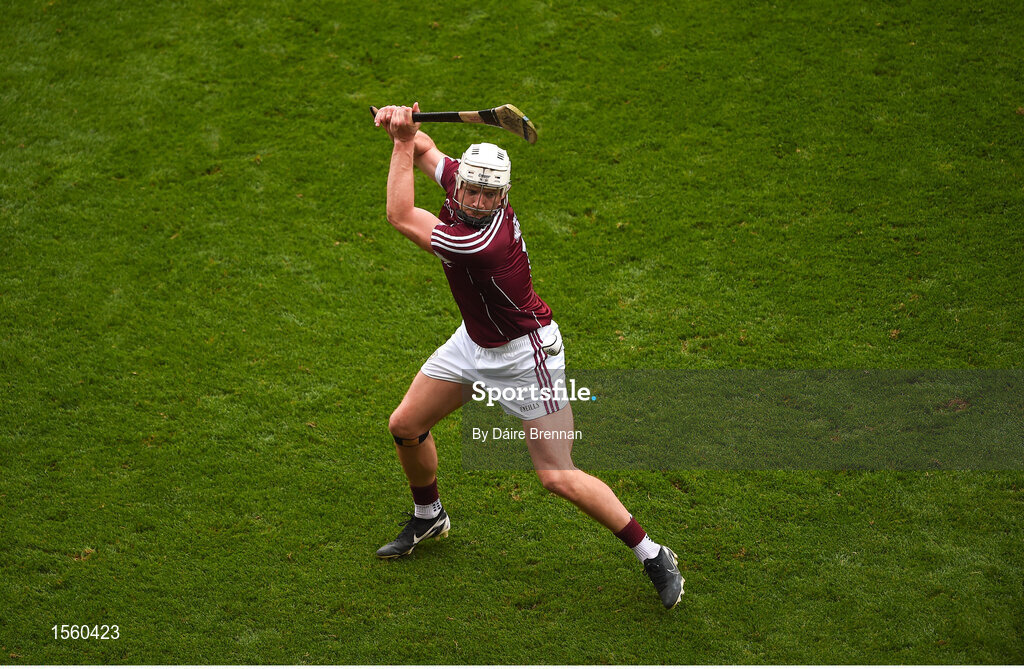 19 August 2018; Joe Canning of Galway hits a late free near the end of the GAA Hurling All-Ireland Senior Championship Final match between Galway and Limerick at Croke Park in Dublin. Photo by Daire Brennan/Sportsfile
