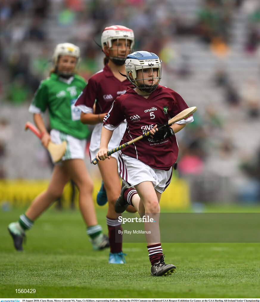 19 August 2018; Ciara Ryan, Mercy Convent NS, Naas, Co Kildare, representing Galway, during the INTO Cumann na mBunscol GAA Respect Exhibition Go Games at the GAA Hurling All-Ireland Senior Championship Final match between Galway and Limerick at Croke Park in Dublin. Photo by Ray McManus/Sportsfile