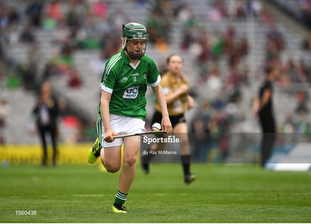 19 August 2018; Kate Ní Riain, Gaelscoil Eiscir Riada Leamhchán, Co Dublin, representing Galway, during the INTO Cumann na mBunscol GAA Respect Exhibition Go Games at the GAA Hurling All-Ireland Senior Championship Final match between Galway and Limerick at Croke Park in Dublin. Photo by Ray McManus/Sportsfile