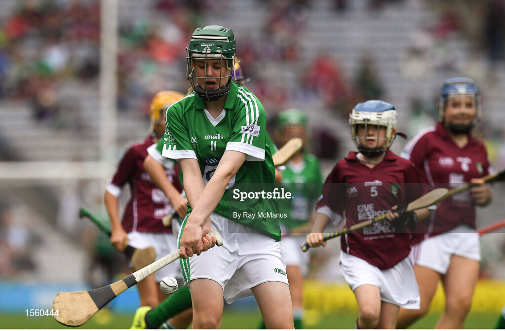 19 August 2018; Ella Ní Chathail, Gaelscoil Mhichil Ciosog, Inis, Clare, representing Limerick, during the INTO Cumann na mBunscol GAA Respect Exhibition Go Games at the GAA Hurling All-Ireland Senior Championship Final match between Galway and Limerick at Croke Park in Dublin. Photo by Ray McManus/Sportsfile