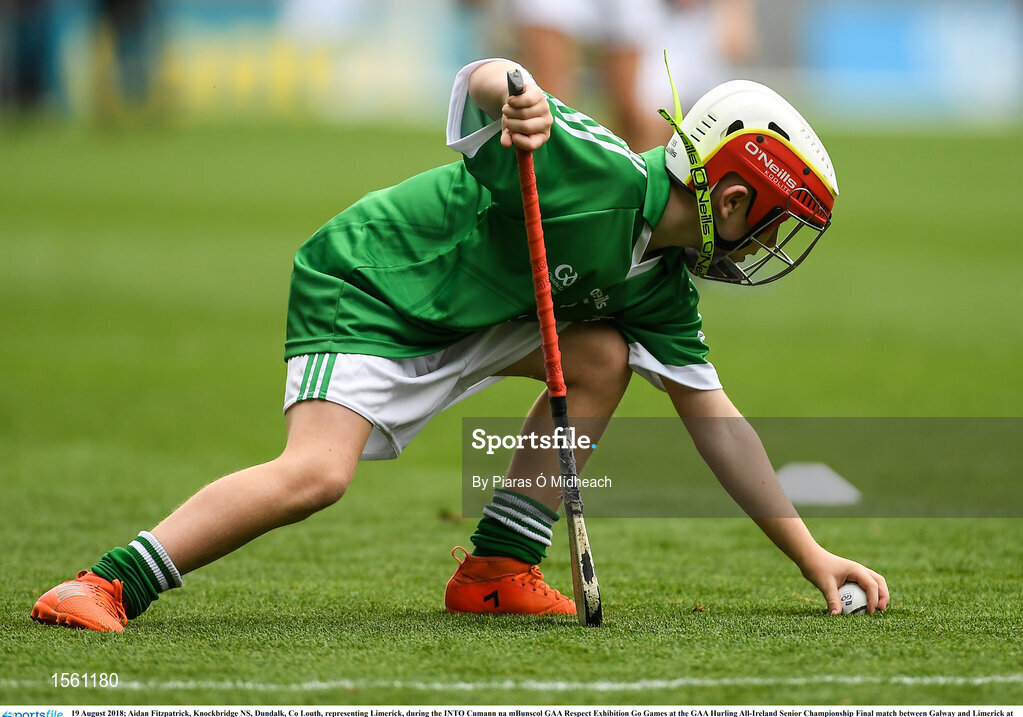 19 August 2018; Aidan Fitzpatrick, Knockbridge NS, Dundalk, Co Louth, representing Limerick, during the INTO Cumann na mBunscol GAA Respect Exhibition Go Games at the GAA Hurling All-Ireland Senior Championship Final match between Galway and Limerick at Croke Park in Dublin. Photo by Piaras Ó Mídheach/Sportsfile