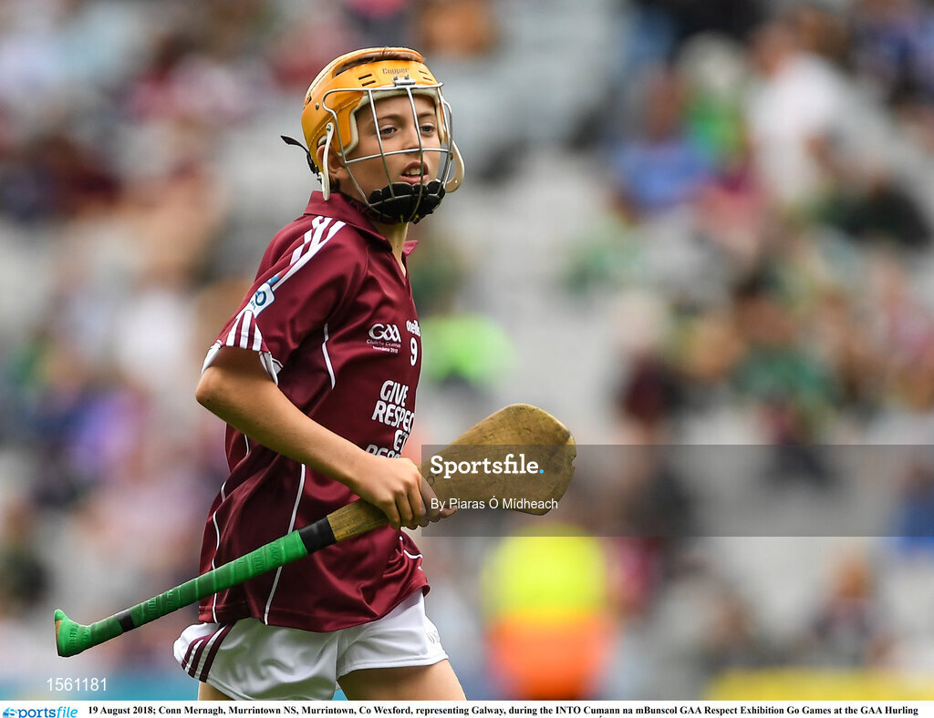19 August 2018; Conn Mernagh, Murrintown NS, Murrintown, Co Wexford, representing Galway, during the INTO Cumann na mBunscol GAA Respect Exhibition Go Games at the GAA Hurling All-Ireland Senior Championship Final match between Galway and Limerick at Croke Park in Dublin. Photo by Piaras Ó Mídheach/Sportsfile