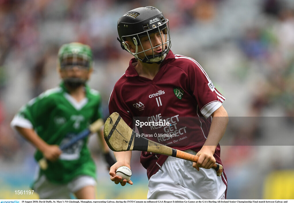 19 August 2018; James Sargent, St Brigid’s PS, Knockloughrim, Co.Derry, representing Galway, during the INTO Cumann na mBunscol GAA Respect Exhibition Go Games at the GAA Hurling All-Ireland Senior Championship Final match between Galway and Limerick at Croke Park in Dublin. Photo by Piaras Ó Mídheach/Sportsfile