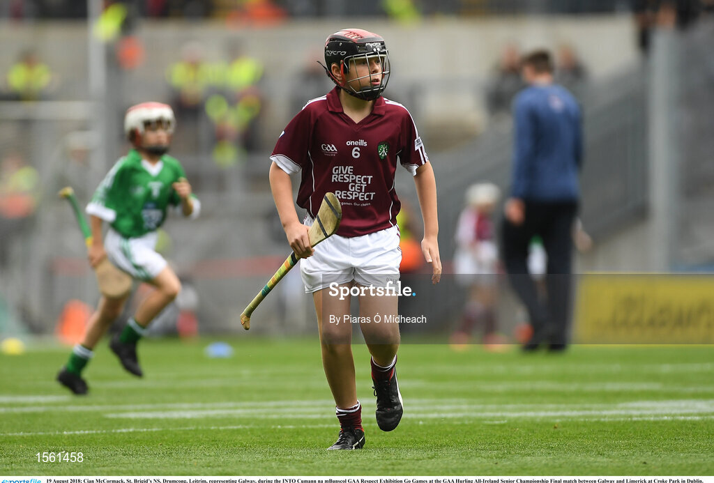 19 August 2018; Cian McCormack, St. Brigid’s NS, Drumcong, Leitrim, representing Galway, during the INTO Cumann na mBunscol GAA Respect Exhibition Go Games at the GAA Hurling All-Ireland Senior Championship Final match between Galway and Limerick at Croke Park in Dublin. Photo by Piaras Ó Mídheach/Sportsfile