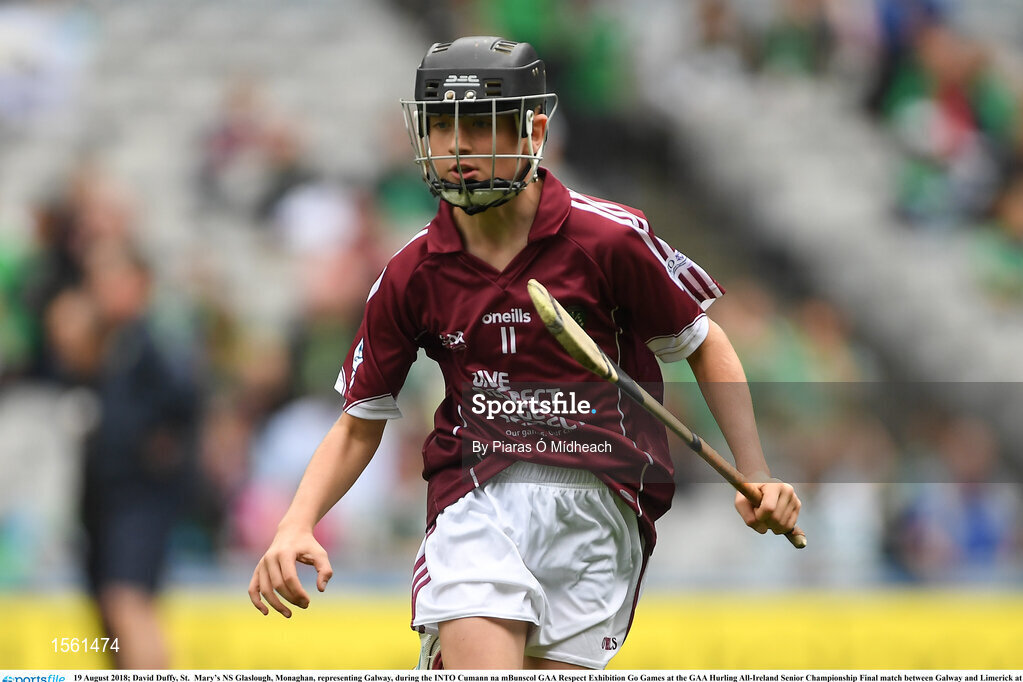 19 August 2018; James Sargent, St Brigid’s PS, Knockloughrim, Co.Derry, representing Galway, during the INTO Cumann na mBunscol GAA Respect Exhibition Go Games at the GAA Hurling All-Ireland Senior Championship Final match between Galway and Limerick at Croke Park in Dublin. Photo by Piaras Ó Mídheach/Sportsfile