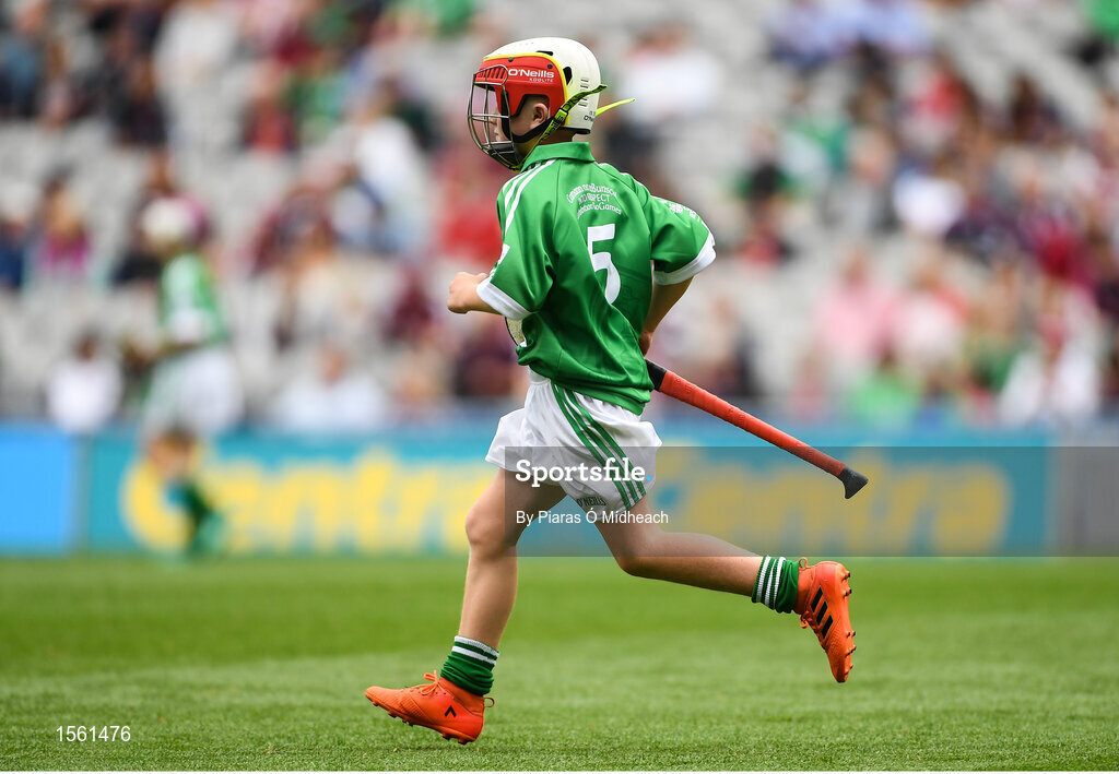 19 August 2018; Aidan Fitzpatrick, Knockbridge NS, Dundalk, Co Louth, representing Limerick, during the INTO Cumann na mBunscol GAA Respect Exhibition Go Games at the GAA Hurling All-Ireland Senior Championship Final match between Galway and Limerick at Croke Park in Dublin. Photo by Piaras Ó Mídheach/Sportsfile