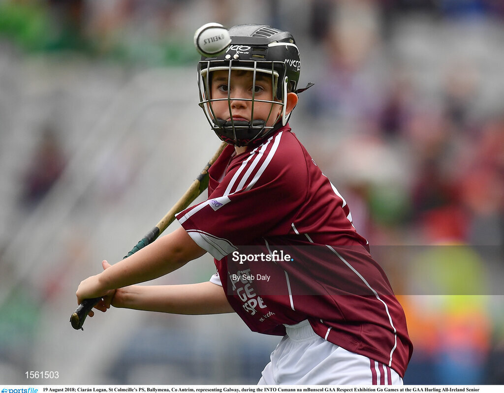 19 August 2018; Ciarán Logan, St Colmcille’s PS, Ballymena, Co Antrim, representing Galway, during the INTO Cumann na mBunscol GAA Respect Exhibition Go Games at the GAA Hurling All-Ireland Senior Championship Final match between Galway and Limerick at Croke Park in Dublin. Photo by Seb Daly/Sportsfile