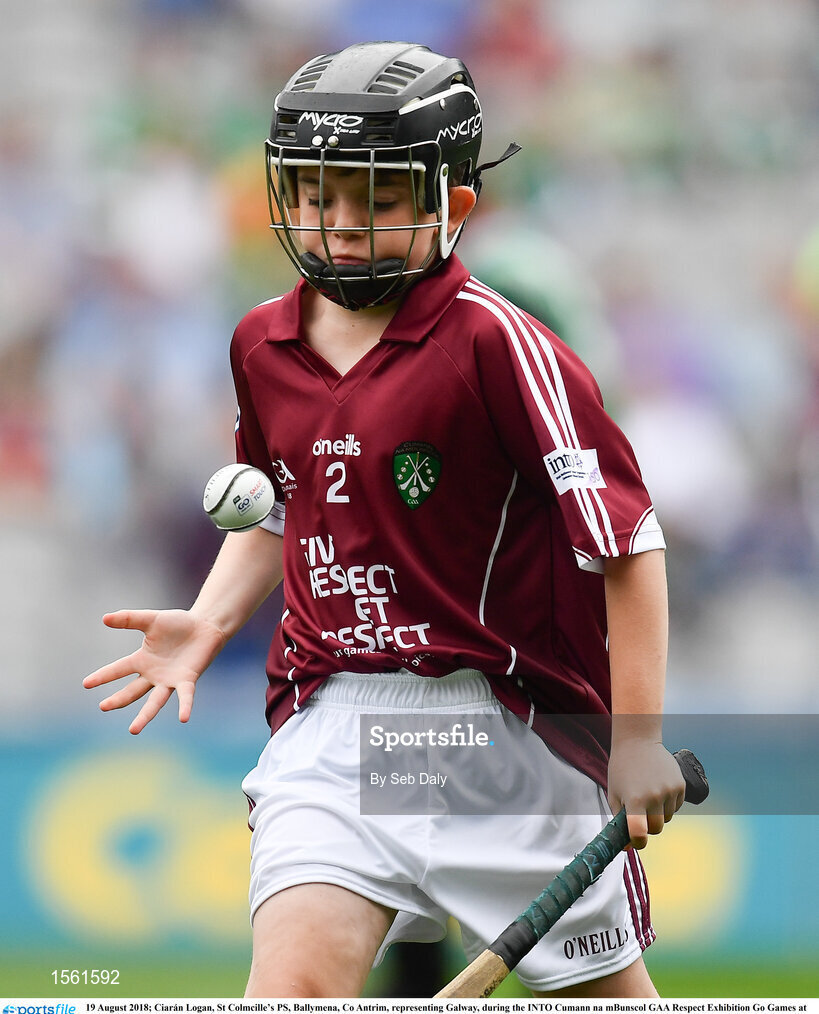 19 August 2018; Ciarán Logan, St Colmcille’s PS, Ballymena, Co Antrim, representing Galway, during the INTO Cumann na mBunscol GAA Respect Exhibition Go Games at the GAA Hurling All-Ireland Senior Championship Final match between Galway and Limerick at Croke Park in Dublin. Photo by Seb Daly/Sportsfile