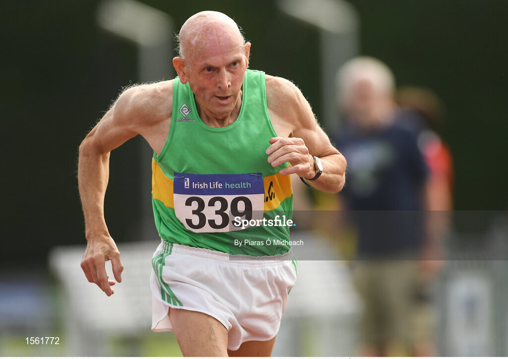 18 August 2018; Michael Kiely of Rising Sun A.C., M70, competing in the 1500m event during the Irish Life Health National Track & Field Masters Championships at Tullamore Harriers Stadium in Offaly. Photo by Piaras Ó Mídheach/Sportsfile