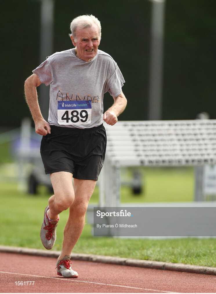18 August 2018; Michael Duggan of Annalee A.C., M75, competing in the 1500m event during the Irish Life Health National Track & Field Masters Championships at Tullamore Harriers Stadium in Offaly. Photo by Piaras Ó Mídheach/Sportsfile