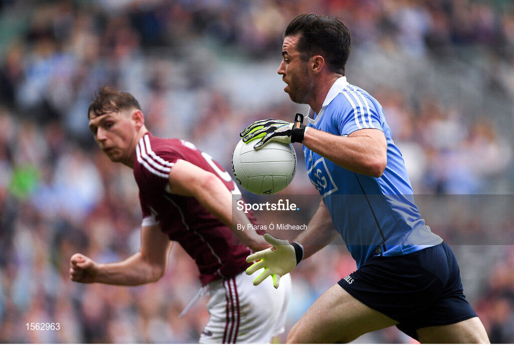11 August 2018; Michael Darragh Macauley of Dublin in action against Thomas Flynn of Galway during the GAA Football All-Ireland Senior Championship semi-final match between Dublin and Galway at Croke Park in Dublin. Photo by Piaras Ó Mídheach/Sportsfile