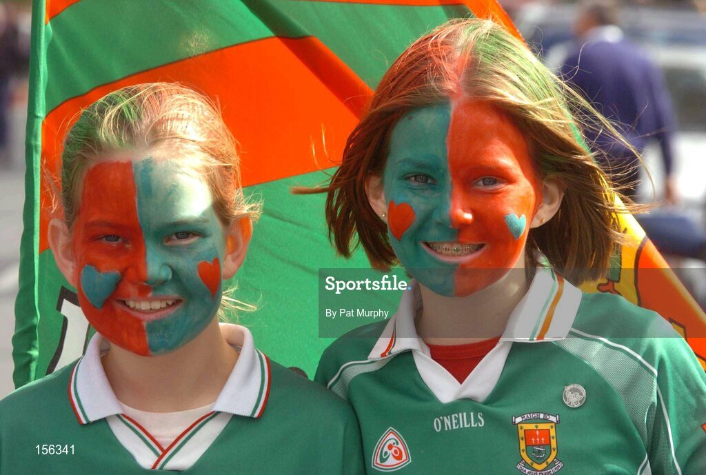 26 September 2004; Young Mayo fans pictured before the game. Bank of Ireland All-Ireland Senior Football Championship Final, Kerry v Mayo, Croke Park, Dublin. Picture credit; Pat Murphy / SPORTSFILE *** Local Caption *** Any photograph taken by SPORTSFILE during, or in connection with, the 2004 Bank of Ireland All-Ireland Senior Football Final which displays GAA logos or contains an image or part of an image of any GAA intellectual property, or, which contains images of a GAA player/players in their playing uniforms, may only be used for editorial and non-advertising purposes. Use of photographs for advertising, as posters or for purchase separately is strictly prohibited unless prior written approval has been obtained from the Gaelic Athletic Association.