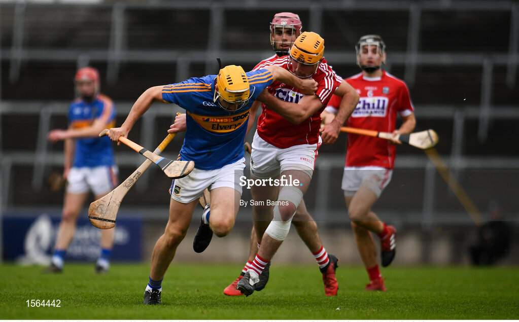 26 August 2018; Mark Kehoe of Tipperary in action against Declan Dalton of Cork during the Bord Gais Energy GAA Hurling All-Ireland U21 Championship Final match between Cork and Tipperary at the Gaelic Grounds in Limerick. Photo by Sam Barnes/Sportsfile