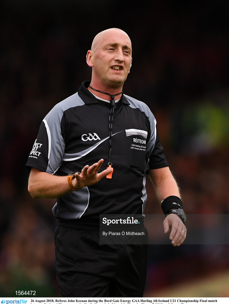 26 August 2018; Referee John Keenan during the Bord Gais Energy GAA Hurling All-Ireland U21 Championship Final match between Cork and Tipperary at the Gaelic Grounds in Limerick. Photo by Piaras Ó Mídheach/Sportsfile
