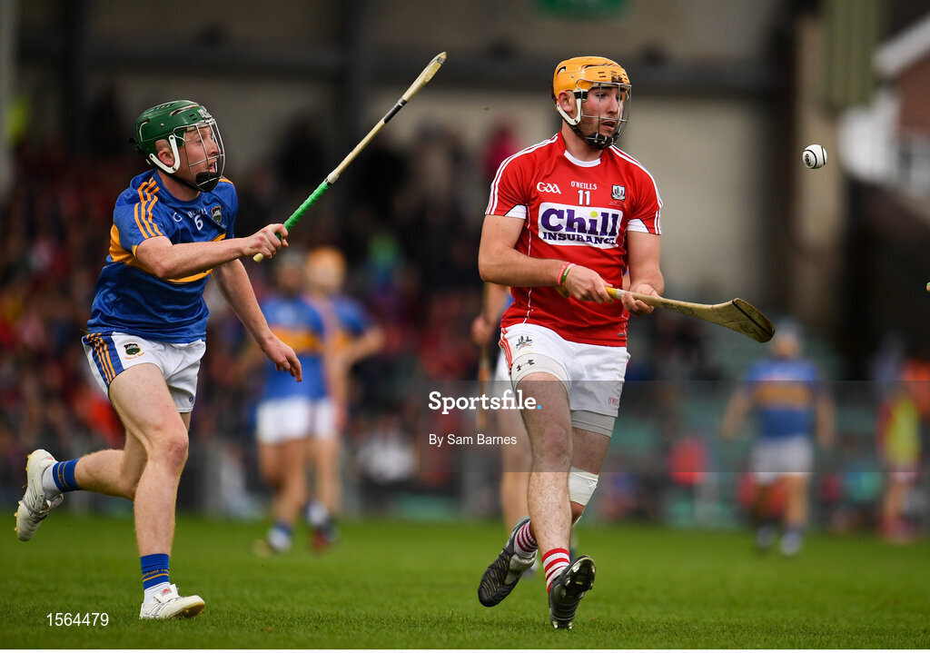 26 August 2018; Declan Dalton of Cork in action against Robert Byrne of Tipperary during the Bord Gais Energy GAA Hurling All-Ireland U21 Championship Final match between Cork and Tipperary at the Gaelic Grounds in Limerick. Photo by Sam Barnes/Sportsfile