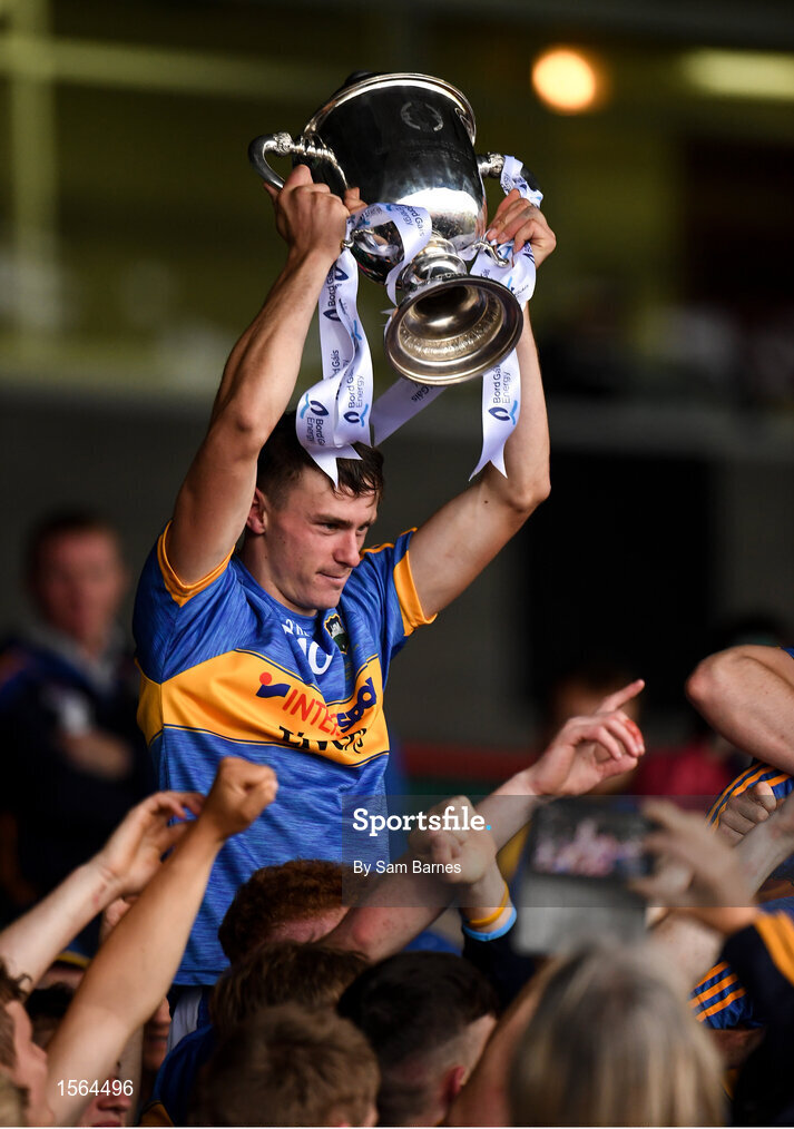 26 August 2018; Tipperary captain Colin English lifts the James Nowlan Cup following the Bord Gais Energy GAA Hurling All-Ireland U21 Championship Final match between Cork and Tipperary at the Gaelic Grounds in Limerick. Photo by Sam Barnes/Sportsfile