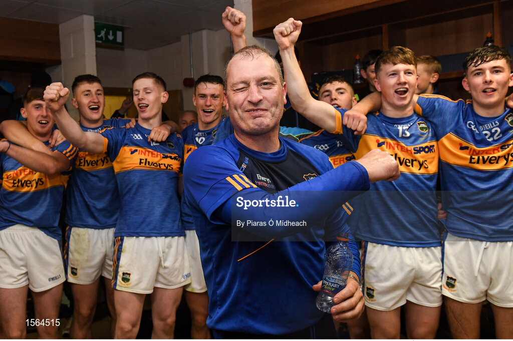26 August 2018; Tipperary manager Liam Cahill celebrates on his arrival back into the winning dressing room after the Bord Gais Energy GAA Hurling All-Ireland U21 Championship Final match between Cork and Tipperary at the Gaelic Grounds in Limerick. Photo by Piaras Ó Mídheach/Sportsfile