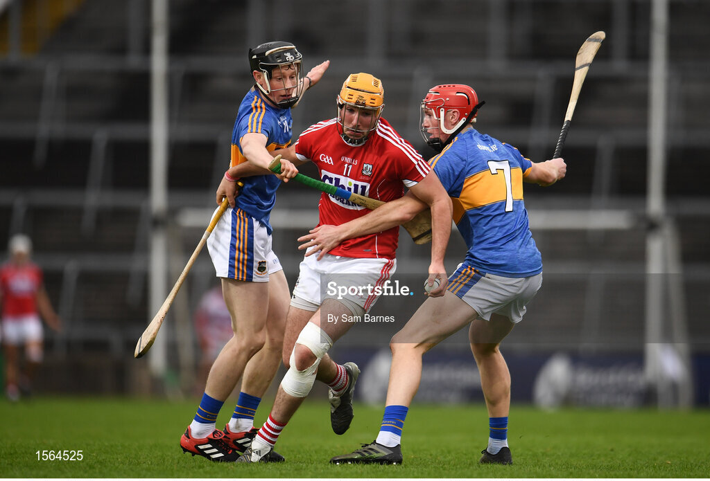 26 August 2018; Declan Dalton of Cork in action against Jerome Cahill, left, and Dillon Quirke of Tipperary during the Bord Gais Energy GAA Hurling All-Ireland U21 Championship Final match between Cork and Tipperary at the Gaelic Grounds in Limerick. Photo by Sam Barnes/Sportsfile