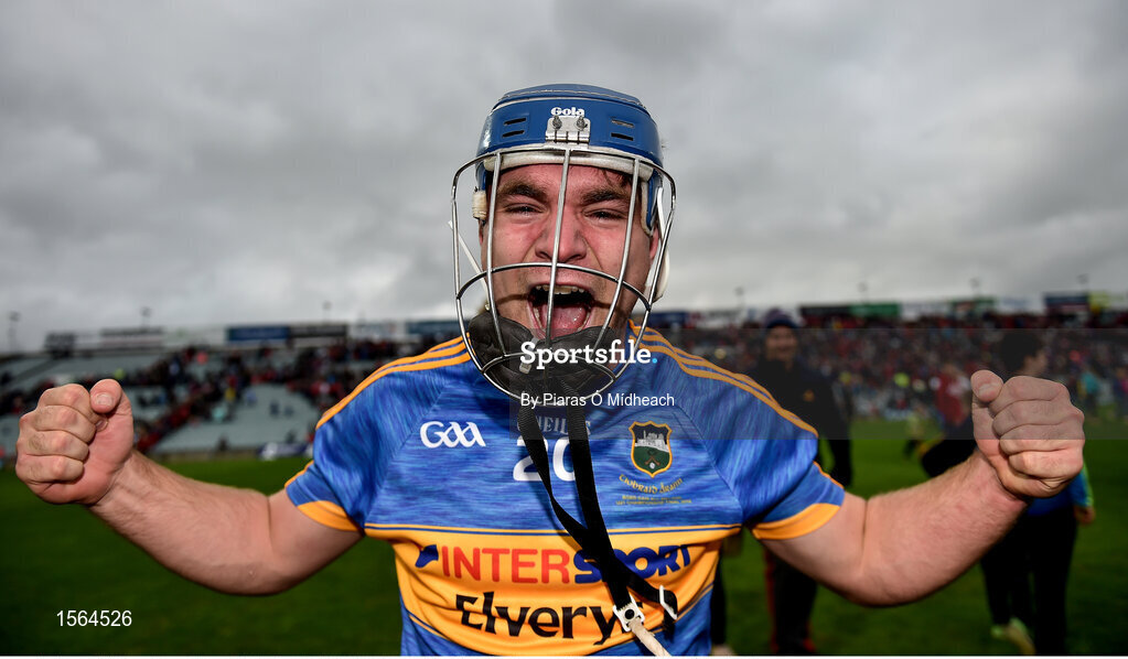 26 August 2018; David Gleeson of Tipperary celebrates after the Bord Gais Energy GAA Hurling All-Ireland U21 Championship Final match between Cork and Tipperary at the Gaelic Grounds in Limerick. Photo by Piaras Ó Mídheach/Sportsfile