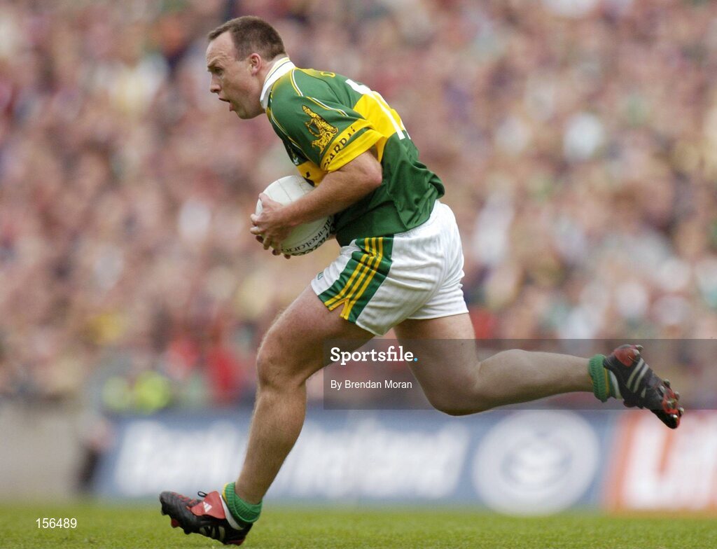 26 September 2004; John Crowley, Kerry. Bank of Ireland All-Ireland Senior Football Championship Final, Kerry v Mayo, Croke Park, Dublin. Picture credit; Brendan Moran / SPORTSFILE *** Local Caption *** Any photograph taken by SPORTSFILE during, or in connection with, the 2004 Bank of Ireland All-Ireland Senior Football Final which displays GAA logos or contains an image or part of an image of any GAA intellectual property, or, which contains images of a GAA player/players in their playing uniforms, may only be used for editorial and non-advertising purposes. Use of photographs for advertising, as posters or for purchase separately is strictly prohibited unless prior written approval has been obtained from the Gaelic Athletic Association.