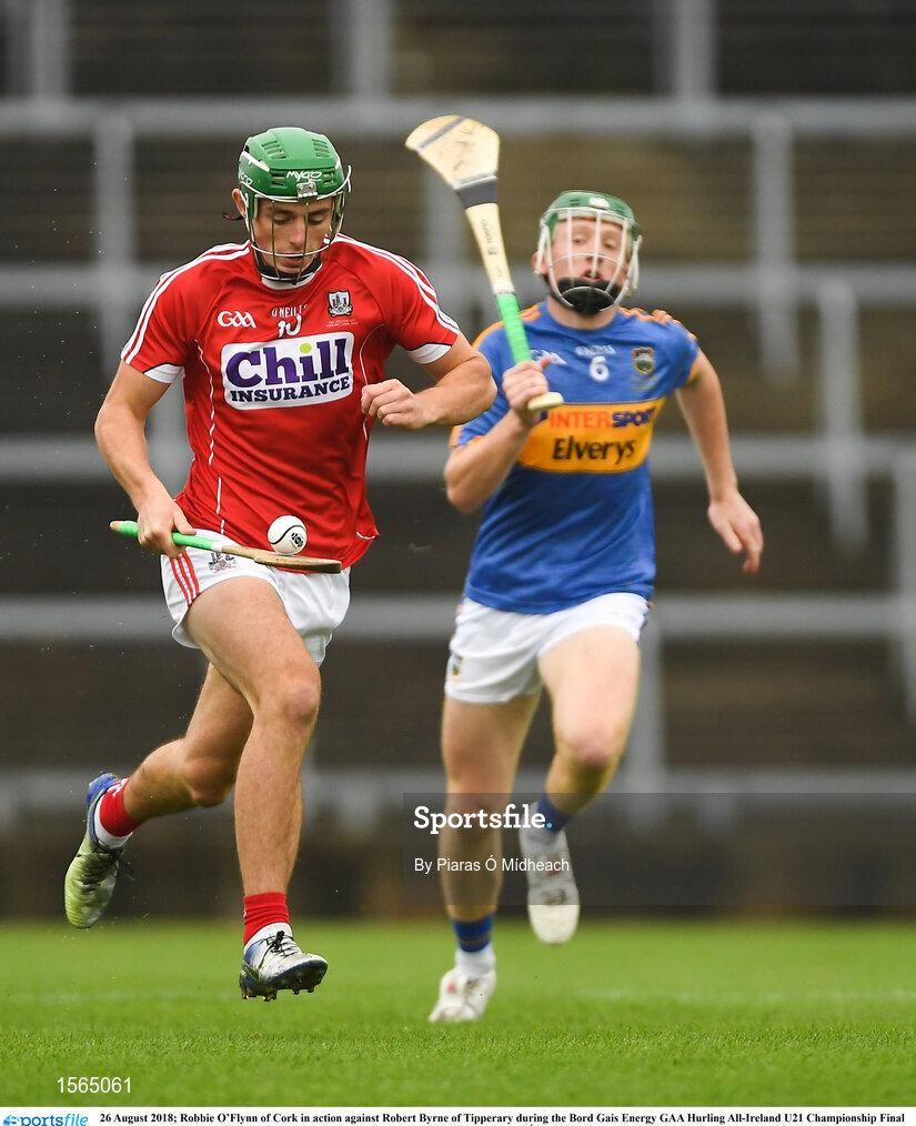 26 August 2018; Robbie O’Flynn of Cork in action against Robert Byrne of Tipperary during the Bord Gais Energy GAA Hurling All-Ireland U21 Championship Final match between Cork and Tipperary at the Gaelic Grounds in Limerick. Photo by Piaras Ó Mídheach/Sportsfile