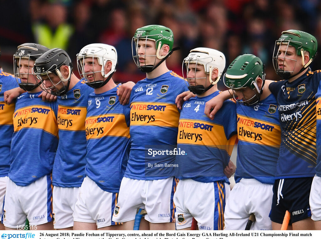 26 August 2018; Paudie Feehan of Tipperary, centre, ahead of the Bord Gais Energy GAA Hurling All-Ireland U21 Championship Final match between Cork and Tipperary at the Gaelic Grounds in Limerick. Photo by Sam Barnes/Sportsfile