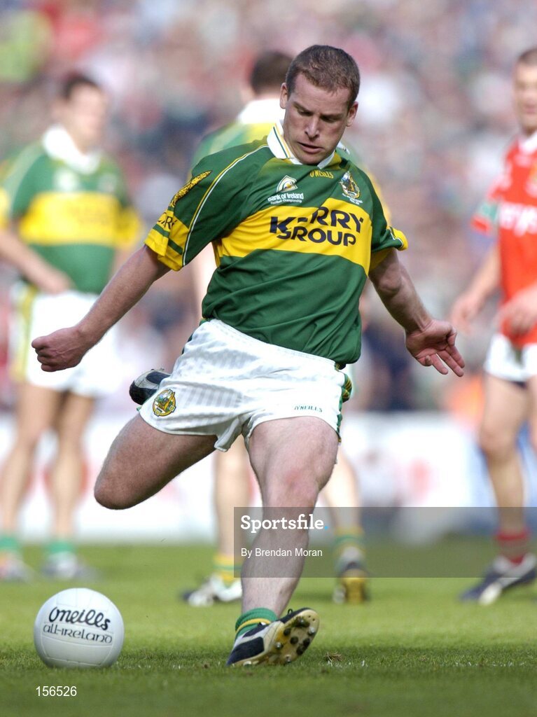 26 September 2004; Dara O Cinneide, Kerry. Bank of Ireland All-Ireland Senior Football Championship Final, Kerry v Mayo, Croke Park, Dublin. Picture credit; Brendan Moran / SPORTSFILE *** Local Caption *** Any photograph taken by SPORTSFILE during, or in connection with, the 2004 Bank of Ireland All-Ireland Senior Football Final which displays GAA logos or contains an image or part of an image of any GAA intellectual property, or, which contains images of a GAA player/players in their playing uniforms, may only be used for editorial and non-advertising purposes. Use of photographs for advertising, as posters or for purchase separately is strictly prohibited unless prior written approval has been obtained from the Gaelic Athletic Association.