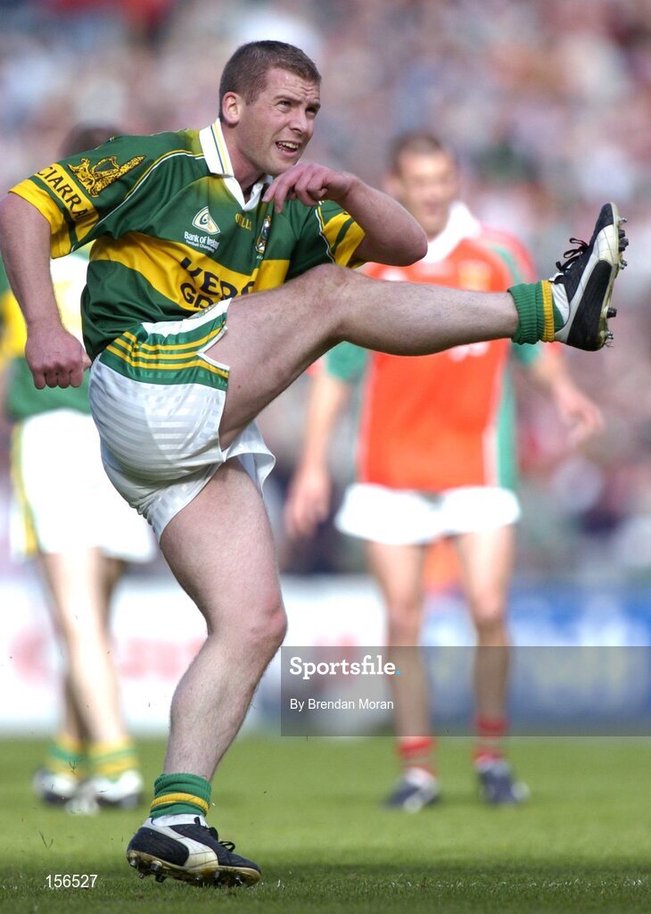 26 September 2004; Dara O Cinneide, Kerry. Bank of Ireland All-Ireland Senior Football Championship Final, Kerry v Mayo, Croke Park, Dublin. Picture credit; Brendan Moran / SPORTSFILE *** Local Caption *** Any photograph taken by SPORTSFILE during, or in connection with, the 2004 Bank of Ireland All-Ireland Senior Football Final which displays GAA logos or contains an image or part of an image of any GAA intellectual property, or, which contains images of a GAA player/players in their playing uniforms, may only be used for editorial and non-advertising purposes. Use of photographs for advertising, as posters or for purchase separately is strictly prohibited unless prior written approval has been obtained from the Gaelic Athletic Association.