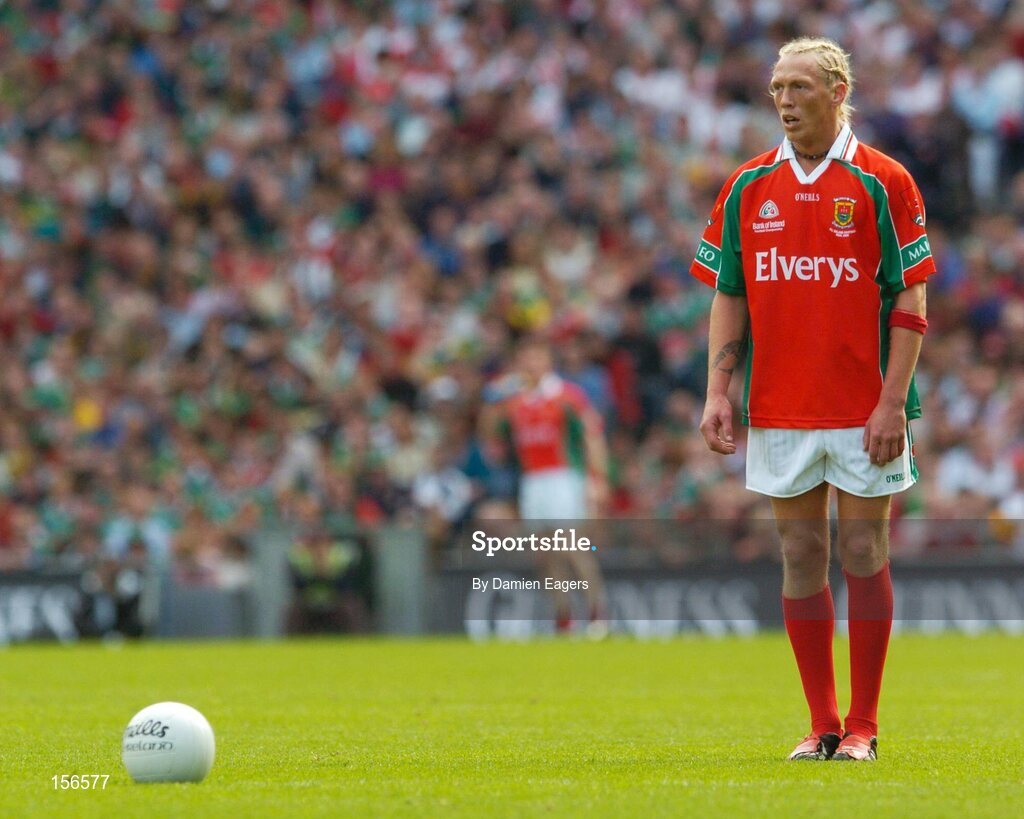 26 September 2004; Ciaran McDonald, Mayo. Bank of Ireland All-Ireland Senior Football Championship Final, Kerry v Mayo, Croke Park, Dublin. Picture credit; Damien Eagers / SPORTSFILE *** Local Caption *** Any photograph taken by SPORTSFILE during, or in connection with, the 2004 Bank of Ireland All-Ireland Senior Football Final which displays GAA logos or contains an image or part of an image of any GAA intellectual property, or, which contains images of a GAA player/players in their playing uniforms, may only be used for editorial and non-advertising purposes. Use of photographs for advertising, as posters or for purchase separately is strictly prohibited unless prior written approval has been obtained from the Gaelic Athletic Association.