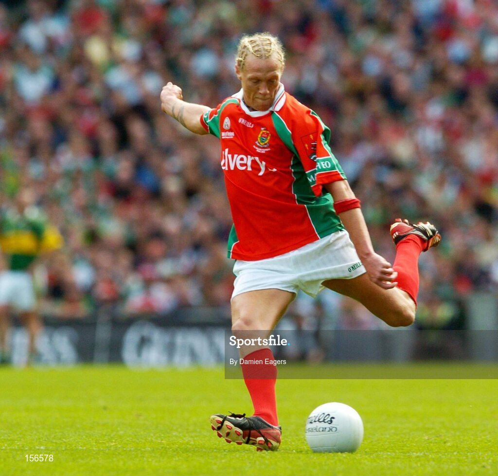 26 September 2004; Ciaran McDonald, Mayo. Bank of Ireland All-Ireland Senior Football Championship Final, Kerry v Mayo, Croke Park, Dublin. Picture credit; Damien Eagers / SPORTSFILE *** Local Caption *** Any photograph taken by SPORTSFILE during, or in connection with, the 2004 Bank of Ireland All-Ireland Senior Football Final which displays GAA logos or contains an image or part of an image of any GAA intellectual property, or, which contains images of a GAA player/players in their playing uniforms, may only be used for editorial and non-advertising purposes. Use of photographs for advertising, as posters or for purchase separately is strictly prohibited unless prior written approval has been obtained from the Gaelic Athletic Association.