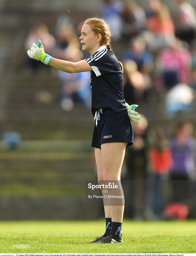 25 August 2018; Dublin goalkeeper Ciara Trant during the TG4 All-Ireland Ladies Football Senior Championship Semi-Final match between Dublin and Galway at Dr Hyde Park in Roscommon. Photo by Piaras Ó Mídheach/Sportsfile
