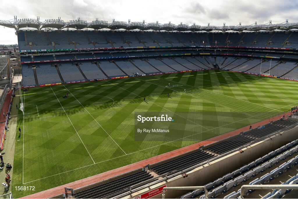 2 September 2018; A general view of the Croke Park pitch as finishing touches are applied by ground staff in advance of the GAA Football All-Ireland Senior Championship Final match between Dublin and Tyrone at Croke Park in Dublin. Photo by Ray McManus/Sportsfile