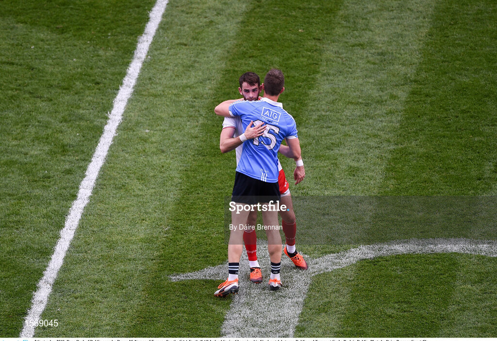 2 September 2018; Dean Rock of Dublin consoles Ronan McNamee of Tyrone after the GAA Football All-Ireland Senior Championship Final match between Dublin and Tyrone at Croke Park in Dublin. Photo by Daire Brennan/Sportsfile