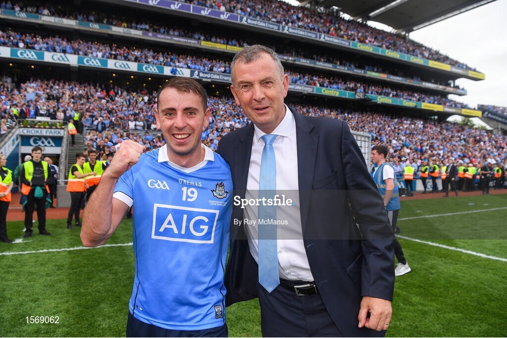 2 September 2018; Cormac Costello of Dublin with his dad John, Chief Executive of the Dublin County Board, after the GAA Football All-Ireland Senior Championship Final match between Dublin and Tyrone at Croke Park in Dublin. Photo by Ray McManus/Sportsfile