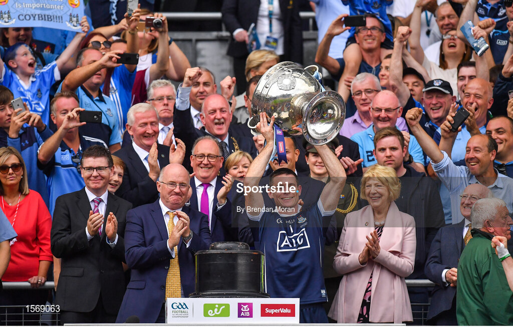 2 September 2018; Dublin captain Stephen Cluxton lifts the Sam Maguire Cup after the GAA Football All-Ireland Senior Championship Final match between Dublin and Tyrone at Croke Park in Dublin. Photo by Brendan Moran/Sportsfile