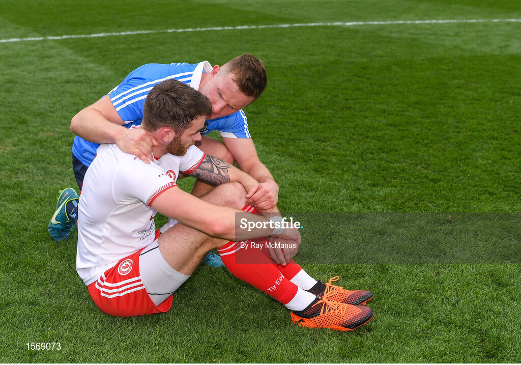 2 September 2018; Ciarán Kilkenny of Dublin consoles after Michael McKernan of Tyrone after the GAA Football All-Ireland Senior Championship Final match between Dublin and Tyrone at Croke Park in Dublin. Photo by Ray McManus/Sportsfile