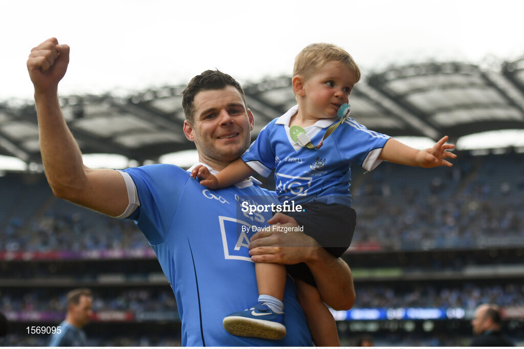 2 September 2018; Kevin McManamon of Dublin and his nephew Liam, age 2, celebrate after the GAA Football All-Ireland Senior Championship Final match between Dublin and Tyrone at Croke Park in Dublin. Photo by David Fitzgerald/Sportsfile