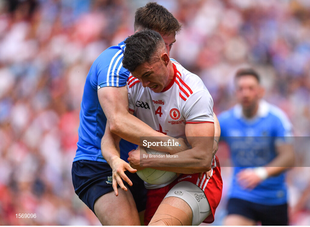 2 September 2018; Richard Donnelly of Tyrone is tackled by John Small of Dublin during the GAA Football All-Ireland Senior Championship Final match between Dublin and Tyrone at Croke Park in Dublin. Photo by Brendan Moran/Sportsfile
