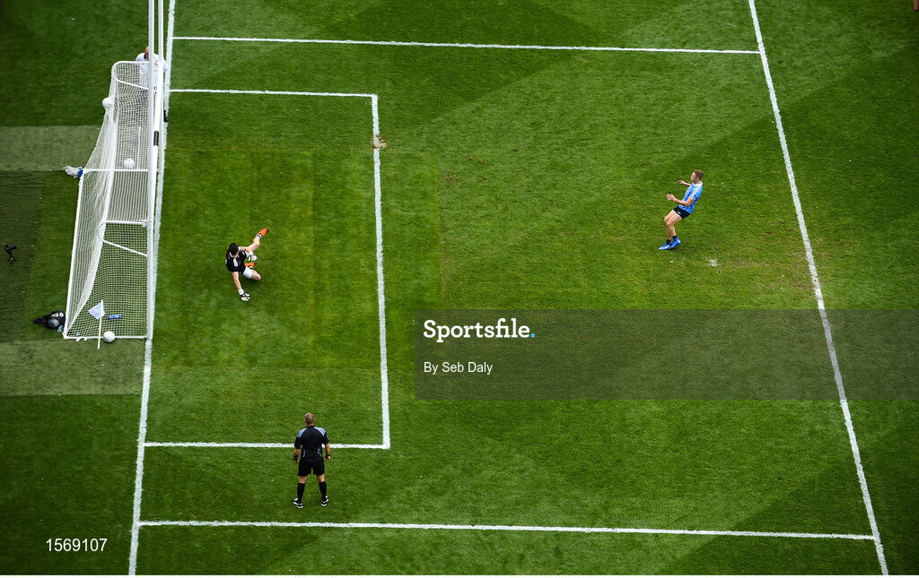 2 September 2018; Paul Mannion of Dublin scores his side's second goal during the GAA Football All-Ireland Senior Championship Final match between Dublin and Tyrone at Croke Park in Dublin. Photo by Seb Daly/Sportsfile