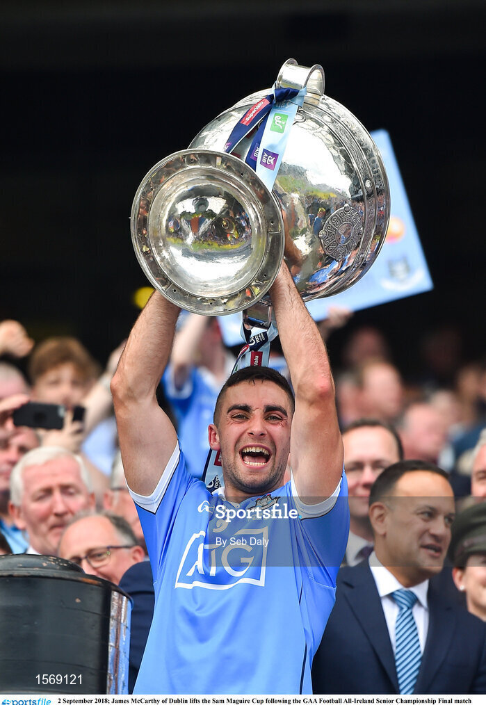 2 September 2018; James McCarthy of Dublin lifts the Sam Maguire Cup following the GAA Football All-Ireland Senior Championship Final match between Dublin and Tyrone at Croke Park in Dublin. Photo by Seb Daly/Sportsfile