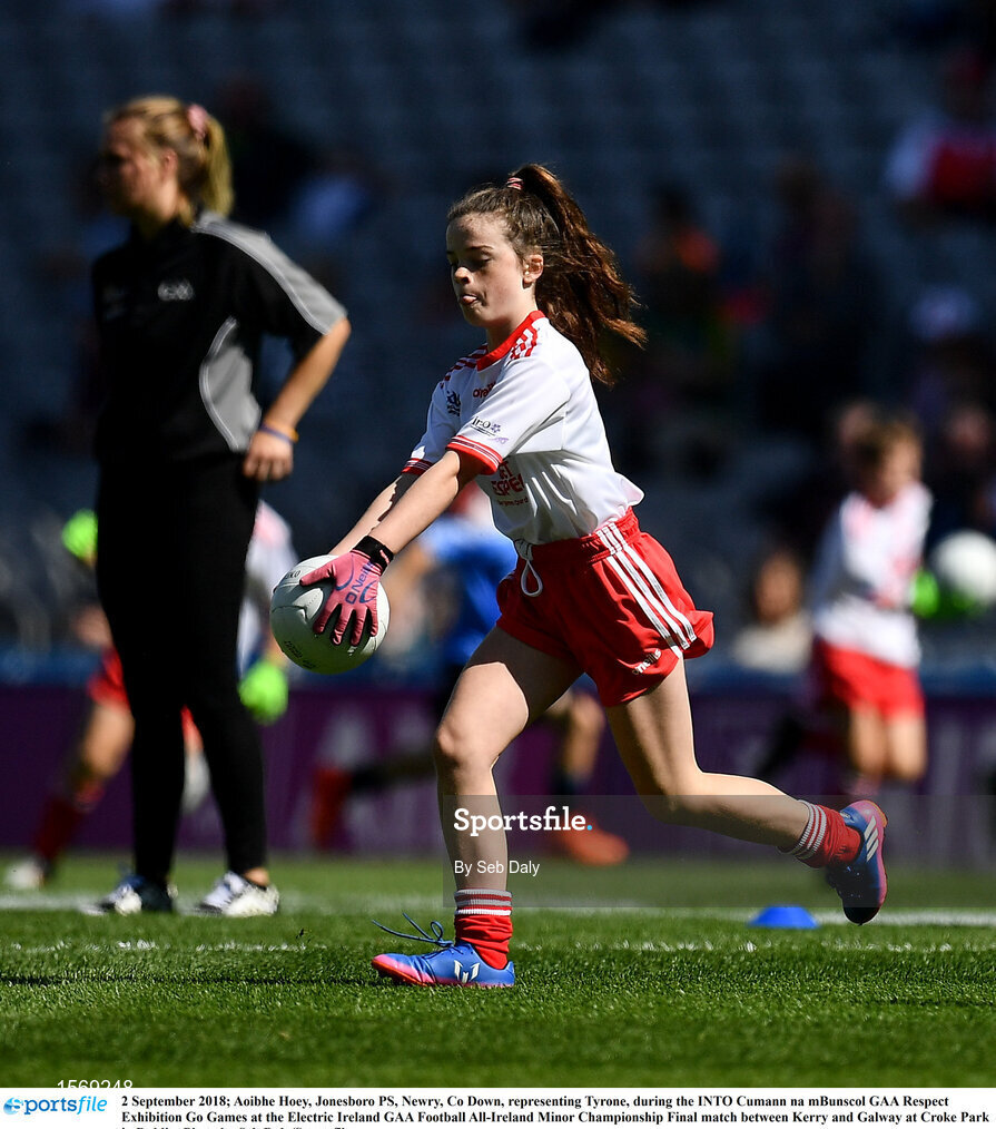 2 September 2018; Aoibhe Hoey, Jonesboro PS, Newry, Co Down, representing Tyrone, during the INTO Cumann na mBunscol GAA Respect Exhibition Go Games at the Electric Ireland GAA Football All-Ireland Minor Championship Final match between Kerry and Galway at Croke Park in Dublin. Photo by Seb Daly/Sportsfile