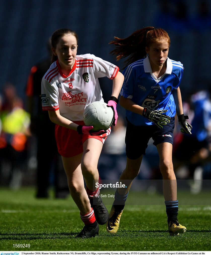 2 September 2018; Rianne Smith, Rathcormac NS, Drumcliffe, Co Sligo, representing Tyrone, during the INTO Cumann na mBunscol GAA Respect Exhibition Go Games at the Electric Ireland GAA Football All-Ireland Minor Championship Final match between Kerry and Galway at Croke Park in Dublin. Photo by Seb Daly/Sportsfile
