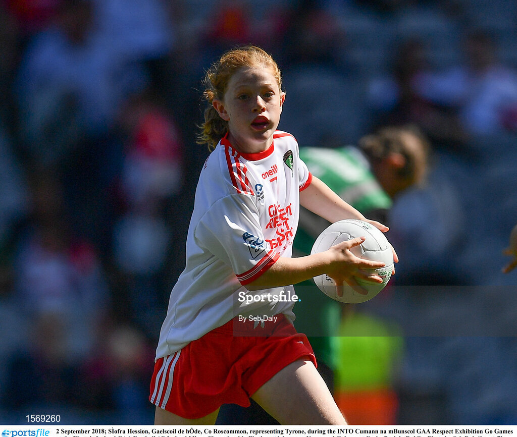 2 September 2018; SÌofra Hession, Gaelscoil de hÕde, Co Roscommon, representing Tyrone, during the INTO Cumann na mBunscol GAA Respect Exhibition Go Games at the Electric Ireland GAA Football All-Ireland Minor Championship Final match between Kerry and Galway at Croke Park in Dublin. Photo by Seb Daly/Sportsfile