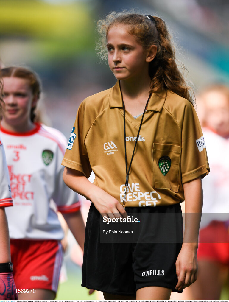 2 September 2018; Leonie Ní Loinsigh, Gaelscoil Uí Riada, Bishopstown, Co Cork, during the INTO Cumann na mBunscol GAA Respect Exhibition Go Games at the Electric Ireland GAA Football All-Ireland Minor Championship Final match between Kerry and Galway at Croke Park in Dublin. Photo by Eóin Noonan/Sportsfile