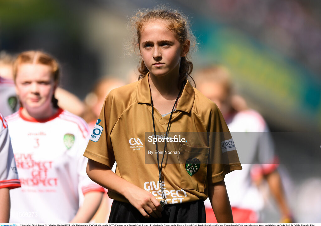 2 September 2018; Leonie Ní Loinsigh, Gaelscoil Uí Riada, Bishopstown, Co Cork, during the INTO Cumann na mBunscol GAA Respect Exhibition Go Games at the Electric Ireland GAA Football All-Ireland Minor Championship Final match between Kerry and Galway at Croke Park in Dublin. Photo by Eóin Noonan/Sportsfile