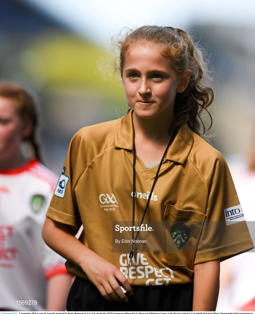 2 September 2018; Leonie Ní Loinsigh, Gaelscoil Uí Riada, Bishopstown, Co Cork, during the INTO Cumann na mBunscol GAA Respect Exhibition Go Games at the Electric Ireland GAA Football All-Ireland Minor Championship Final match between Kerry and Galway at Croke Park in Dublin. Photo by Eóin Noonan/Sportsfile