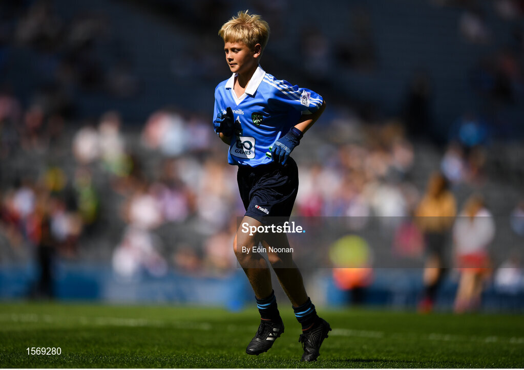 2 September 2018; Alex Craig, Scoil Naomh Eoin, Killenard, Co Laois, representing Dublin, during the INTO Cumann na mBunscol GAA Respect Exhibition Go Games at the Electric Ireland GAA Football All-Ireland Minor Championship Final match between Kerry and Galway at Croke Park in Dublin. Photo by Eóin Noonan/Sportsfile