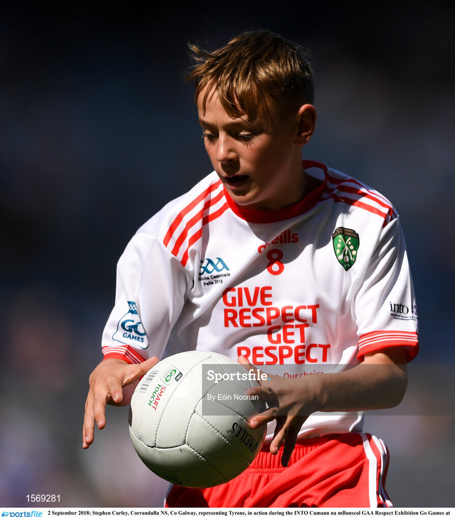 2 September 2018; Stephen Curley, Corrandulla NS, Co Galway, representing Tyrone, in action during the INTO Cumann na mBunscol GAA Respect Exhibition Go Games at the Electric Ireland GAA Football All-Ireland Minor Championship Final match between Kerry and Galway at Croke Park in Dublin. Photo by Eóin Noonan/Sportsfile
