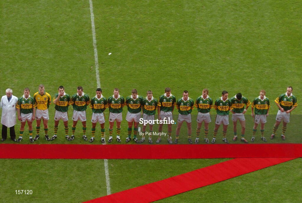 26 September 2004; The Kerry team before the game. Bank of Ireland All-Ireland Senior Football Championship Final, Kerry v Mayo, Croke Park, Dublin. Picture credit; Pat Murphy / SPORTSFILE *** Local Caption *** Any photograph taken by SPORTSFILE during, or in connection with, the 2004 Bank of Ireland All-Ireland Senior Football Final which displays GAA logos or contains an image or part of an image of any GAA intellectual property, or, which contains images of a GAA player/players in their playing uniforms, may only be used for editorial and non-advertising purposes. Use of photographs for advertising, as posters or for purchase separately is strictly prohibited unless prior written approval has been obtained from the Gaelic Athletic Association.